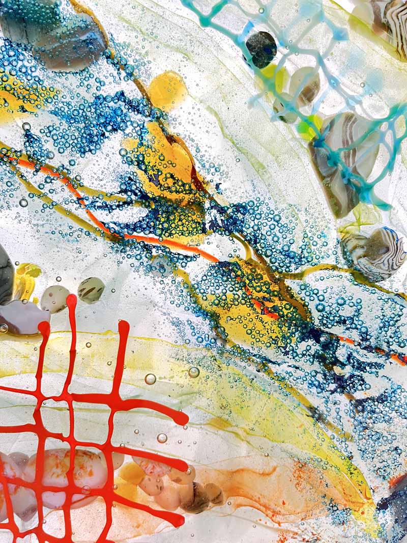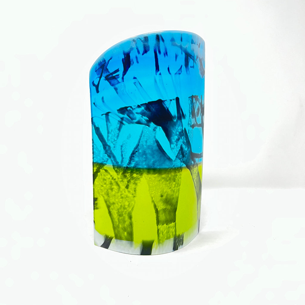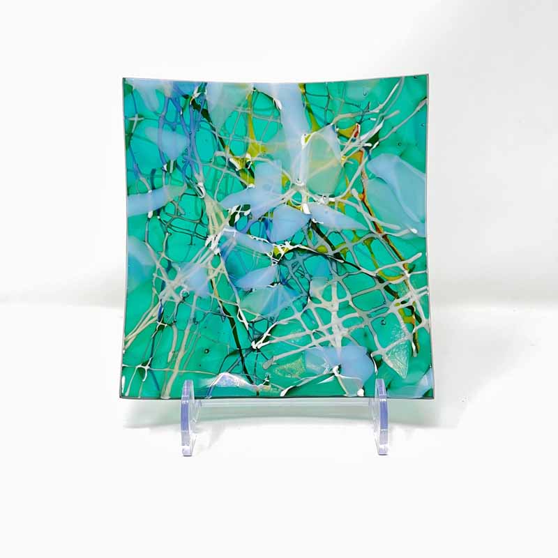 Hilary is fascinated with the properties of glass and the numerous techniques and processes to be explored and experimented with. She makes kiln-formed or leaded items and likes to combine pattern, texture and vibrant colours.