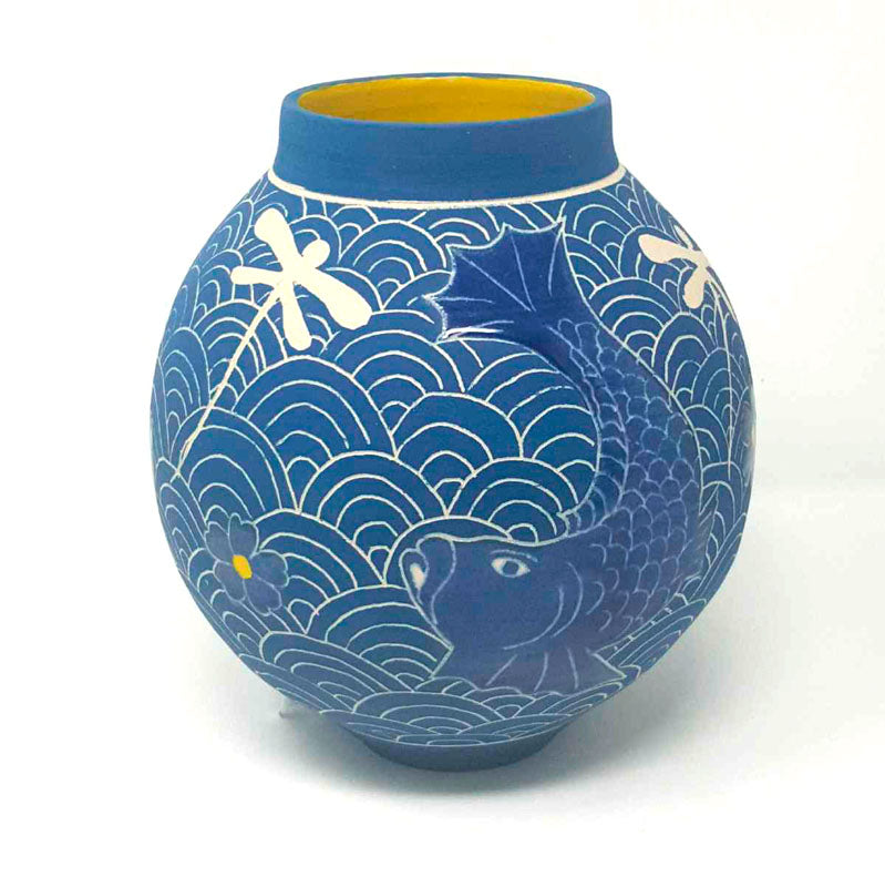 Her work is mostly thrown on the wheel and often classical in form, inspiration coming from the ceramics of ancient Persia and the world around us. With a great love of experimenting with glazes, decorating and firing techniques, her work is mostly stoneware fired, although she also enjoys earthenware and raku.